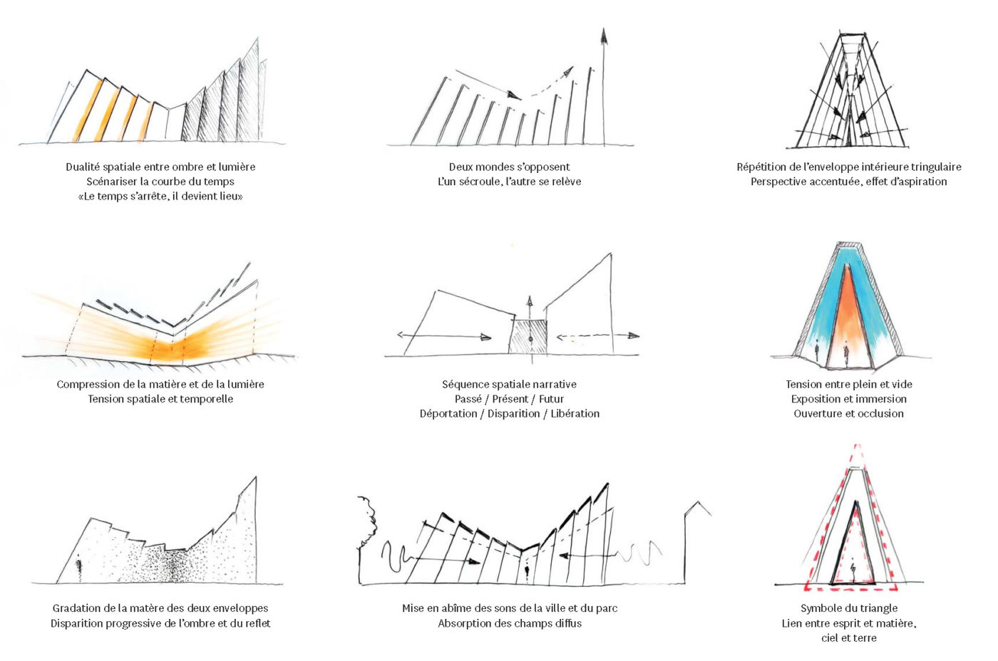 Le projet architectural et artistique dessine un trait d’union, entre le devoir de mémoire du lieu et le domaine de la perception. Au-delà de son degré de sensibilisation avec l’histoire, l’œuvre permet un degré d’interaction, d’apprentissage et d’interprétation grâce aux différentes lectures qu’elle dévoile au fil des jours, des saisons. L’œuvre accentue le degré d’immersion avec l’homme, en dialoguant avec ce dernier aussi bien de l’intérieur que de l’extérieur pour révéler ainsi notre lien intime entre l’Architecture, l’Homme et son histoire.