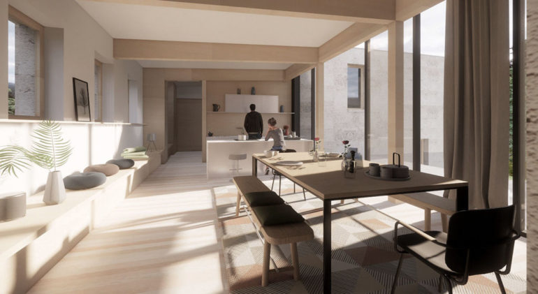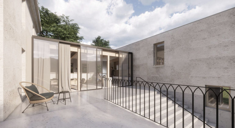 Une réflexion thermique globale a permis, avec la collaboration de nos bureaux thermiques, d’initier des solutions pour parvenir à un confort thermique maximal notamment pour les périodes de canicule, notamment grâce à l’usage de la pierre, à l’orientation des baies, à la mise en oeuvre d’isolants de fibre de bois, ou encore, en profitant de la géothermie générée par la cave. Cela évite ainsi, la mise en place d’appareils de climatisations complexes et énergivores.