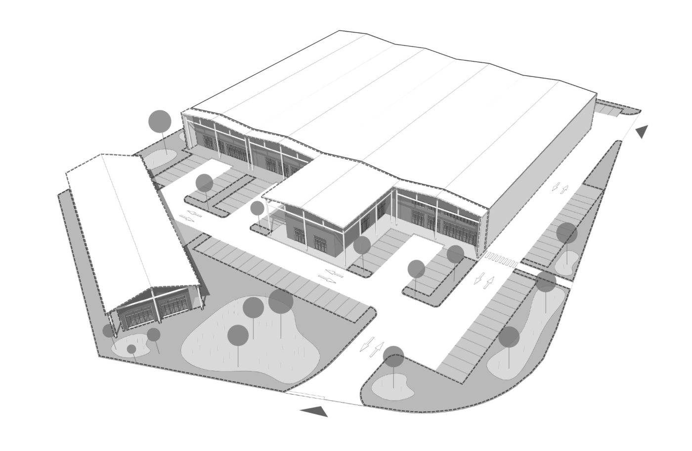 fonctionnement, tandis que les espaces extérieurs, notamment les aires de stationnement et