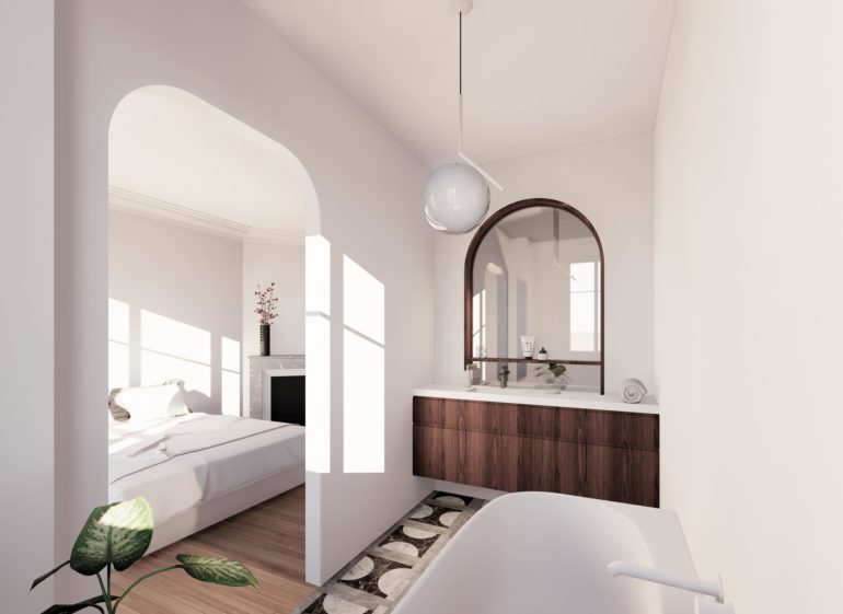 Il s’agit ici de rénover entièrement un appartement à Paris sur les coteaux de la butte Montmartre. Cet appartement haussmannien à la déco désuète nécessite une métamorphose afin d’offrir un lieu de vie adapté et chic pour le jeune couple propriétaire des lieux.