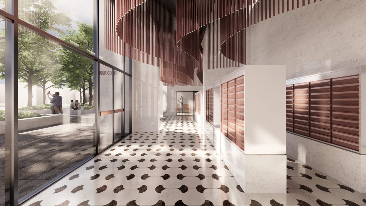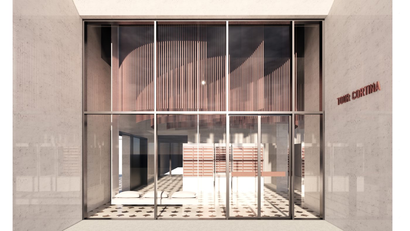 Le syndic de copropriété de la Tour Cortina a sollicité notre structure afin de réaménager le hall d’entrée de son immeuble.